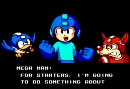 It goes without saying that anyone who has ever played a Mega Man title before will quickly feel right at home with the gameplay in this offering, the entire package is pretty much a carbon-copy of the 8-bit Mega Man games from start to finish. You're faced with 8 robots that you can randomly choose at the level select screen. You are then required to play through the level until you reach the robot boss at the end. There are generally two checkpoints throughout each level: one at the midpoint and one at the entrance to the robot's lair. Once you defeat the robot boss you are given the robot's main weapon, this makes choosing the order of the levels that you play important as certain weapons will make beating many of the tougher robots more manageable.
