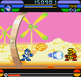 THE GRAPHICS: Having played many MM games over the years, I have always held a soft spot for the classic look of the NES and Game Boy titles. And considering that the graphics of the arcade games were between MM7 and MM8, I was surprised at the quality of the graphics in this cart. Backgrounds were kin to the most detailed Game Boy Color games, with details of various objects being crystal clear. From the whale in the ice levels to the searchlights in the far background. Sprites are actually very good, and many classic NES sprites return. Most notable is the fact that the MM7 bosses from the arcade are transformed into NES-like sprites. Oddly enough, all of them look good, except Junk Man, who seems... wierd. The attacks typically are easily seen, though in Power Figters some attacks (Shade Man and Air Man being the two worst) blend into the background, making evasion difficult. The only other quirk is when the sprites overload, causing some ''classic'' fading of sprites. The only real time this is visible, though, is when the foes explode, which has little or no effect on gameplay. Did I forget to mention that all of the playable characters look great? Including Bass and Duo? Heh.