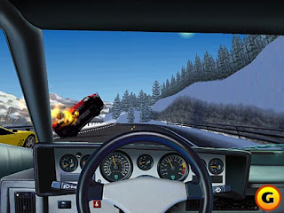 The graphics are extremely good with clear details but you need a pretty powerful PC and a good graphics card to enjoy the game to the maximum. The cars are very well-drawn and you'll feel as if you're truly in the race while playing the game. My favourite part is the races at night. Just check these out, the car's flashlight effects are one of the best I've seen so far (GT comes nowhere close) and the backgrounds are truly awesome. And what about the accidents taking place around you as you skid your way along a muddy track !? I was amazed the first time I played the game and saw an opponent mistaking himself for Tarzan while his car was on fire. Heh, that was just astounding ! By the way, did I tell you about the dead leaves which will even fly up as you pass over them !? NFS III is awesome in terms of graphics and I do feel that it is the best title on the PC when it comes to graphics.