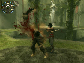 GAMEPLAY: This is the most important part of any game. Well, it's a mixed bag. This time around, to go with the prince's degeneration into a generic "bad ass" hero, we get a new battle system that that guy in the movie section calls "Free Style" fighting. What this means for the gamer is that you can kill an opponent in numerous ways since you can do different combos. Like right, left, right, left or left, left, left, right, etc. What depth this new system has. Sure, it may be cool at first, but I'm the kind of guy who looks at the long run. And well, the novelty wears out after a few hours. In fact, you'll be finding yourself running from most encounters unless it's really necessary to fight. The game is more fight centered now. Which is just plain annoying. Thank you gamers who didn't enjoy the fights in SoT.