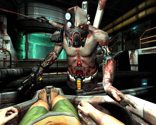 Sadly, it isn't all perfect. Unlike in Doom III, where I was forced to rely on all of my weapons for a good portion of the game because of the scarcity of ammo, I relied primarily on my machine gun in this game and ignored many of the other weapons. Sometimes I'd switch to the shotgun in close-quarters, but I still relied on the machine gun far too often. I also didn't like the grenade launcher at all and thought it wasn't a very capable or practical weapon. Considering that mankind was able to travel the great distances of the galaxy to wage war against an alien race, I should imagine that we'd be able to produce a grenade launcher that can lob a grenade a little more than 10 feet. I mean, I've used a potato launcher to shoot a potato about 50 feet with just hairspray as fuel (don't try this at home), so it's hard to accept the limitations of the grenade launcher in this game.