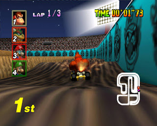 Probably, yes. Mario Kart 64's graphics are cartoonish, but beautiful. I especially like the lighting in the tunnels, and how the characters look when you are chasing a pack of them. I think Wario or Toad look the coolest, and the best, when you are doing this. I mean riding their bumper. Hopefully, you will never do that in real life. That would be bad. I did not tell you too. Diddy Kong Racing's graphics are not that big of an improvement over this game.