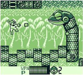 Again, not much story here, but I doubt any MM fan will tell you they play the games for a great plot. Dr. Wily is setting up a rig out in the ocean to mine for precious metals to use for building powerful war machines. Guarding it are old foes from Megaman 3 and 4: Sparkman, Geminiman, Snakeman, Shadowman, Diveman, Skullman, Drillman, and Dustman. Dr. Wily may be getting into a rut, but it's still the formula most players are comfortable with. Megaman has the slide and Rush like before, although there's no more Rush Marine (Too bad, because that would've come in handy in Diveman's level). Megaman can also charge his buster for the first time in the Game Boy series, and Eddie makes his GB debut.