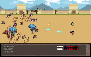 Serious Sam: The Random Encounter features a classic 8-Bit art style which suits its gameplay well. There’s nothing that really stands out as being particular awesome, but it’s well done all the same. The animation of the characters is very nice and it’s really quite cool to see Mental’s horde 8-Bitified. The soundtrack is equally retro-inspired and is one of my favorite parts of the game.